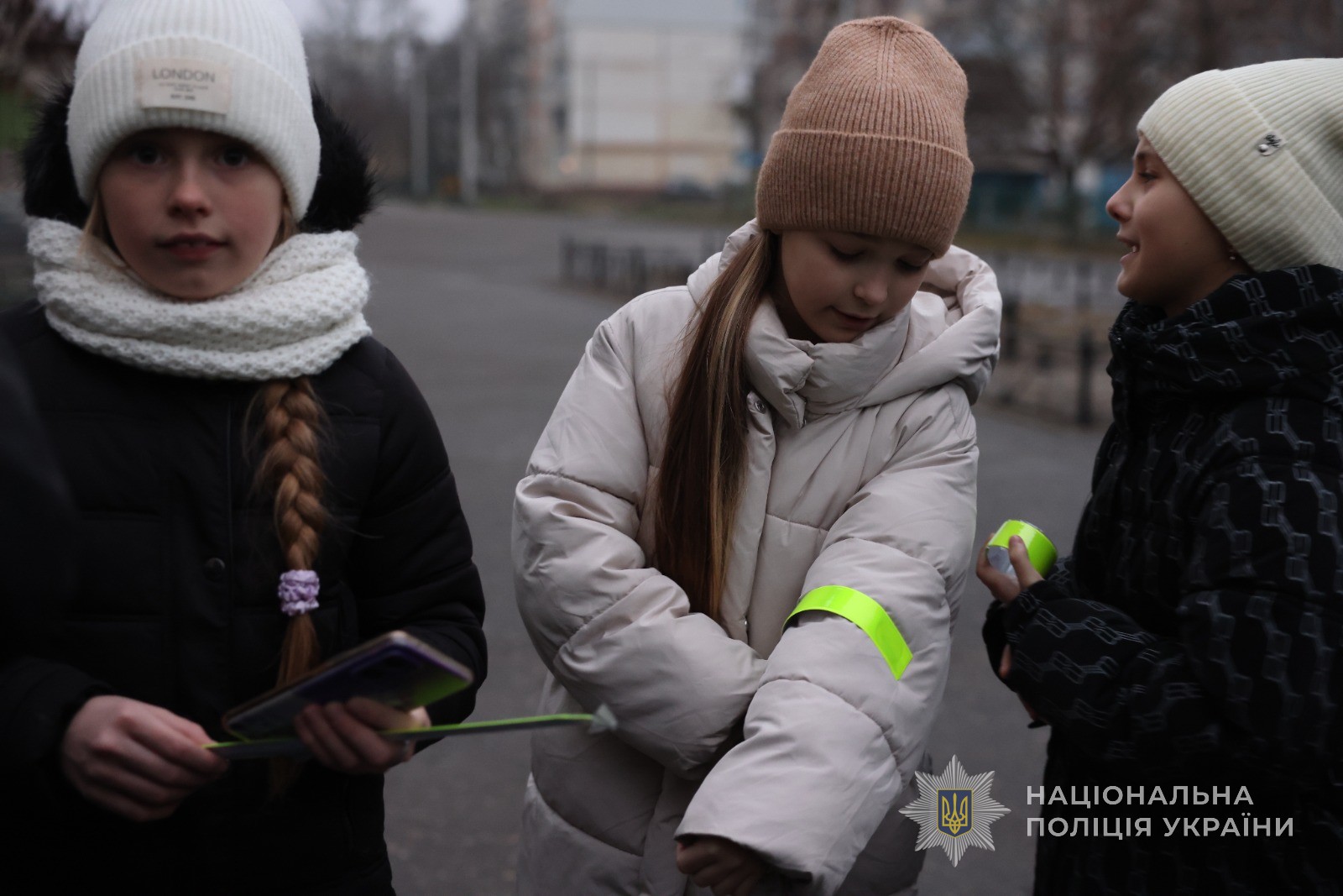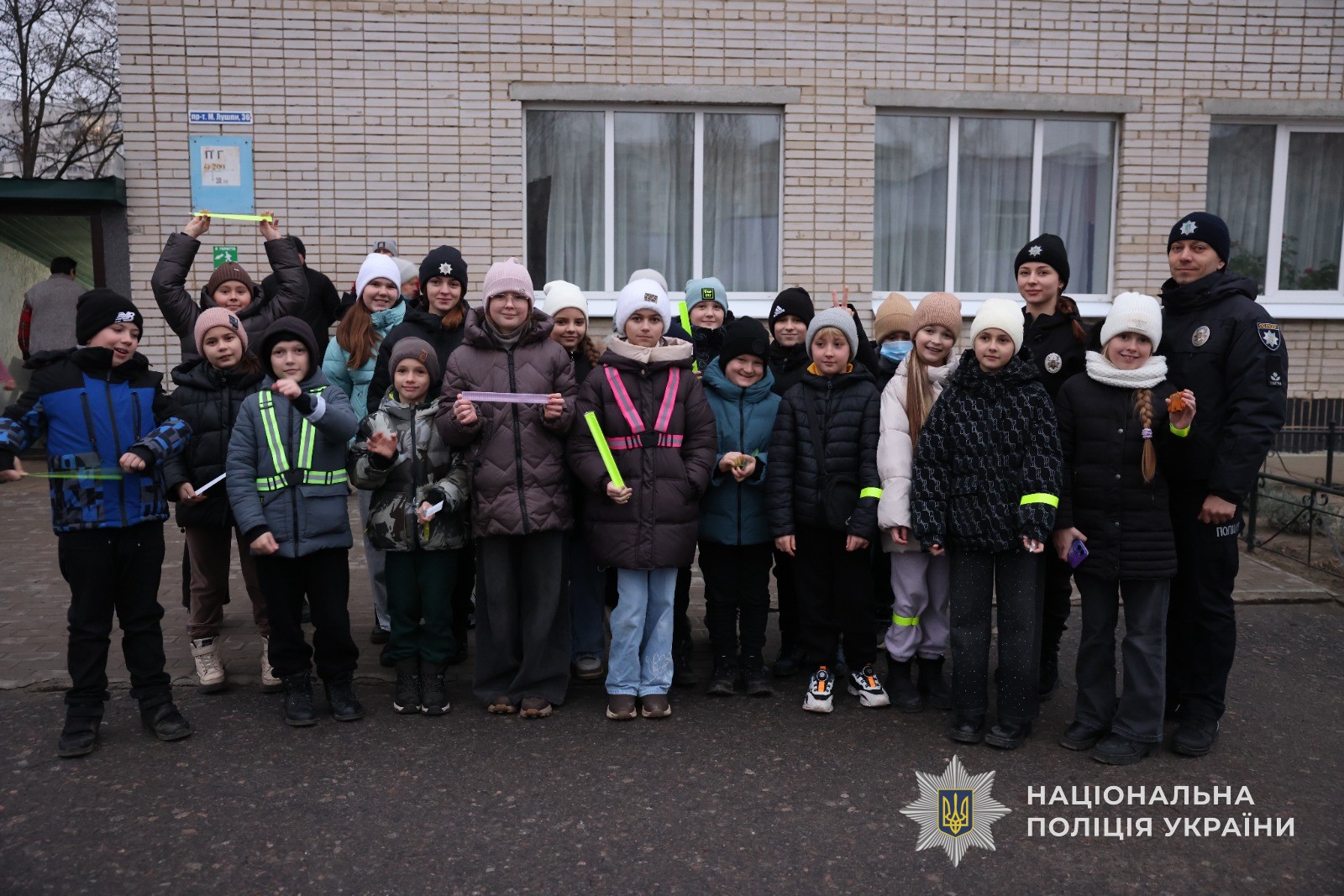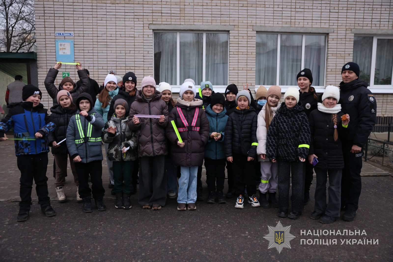 Під час заходу поліцейські не лише спілкувалися з учнями, а й подбали про їхню безпеку на практиці , адже кожній дитині було вручено світлоповертальний флікер, який варто носити під час переходу дороги або руху пішки в умовах недостатньої видимості.