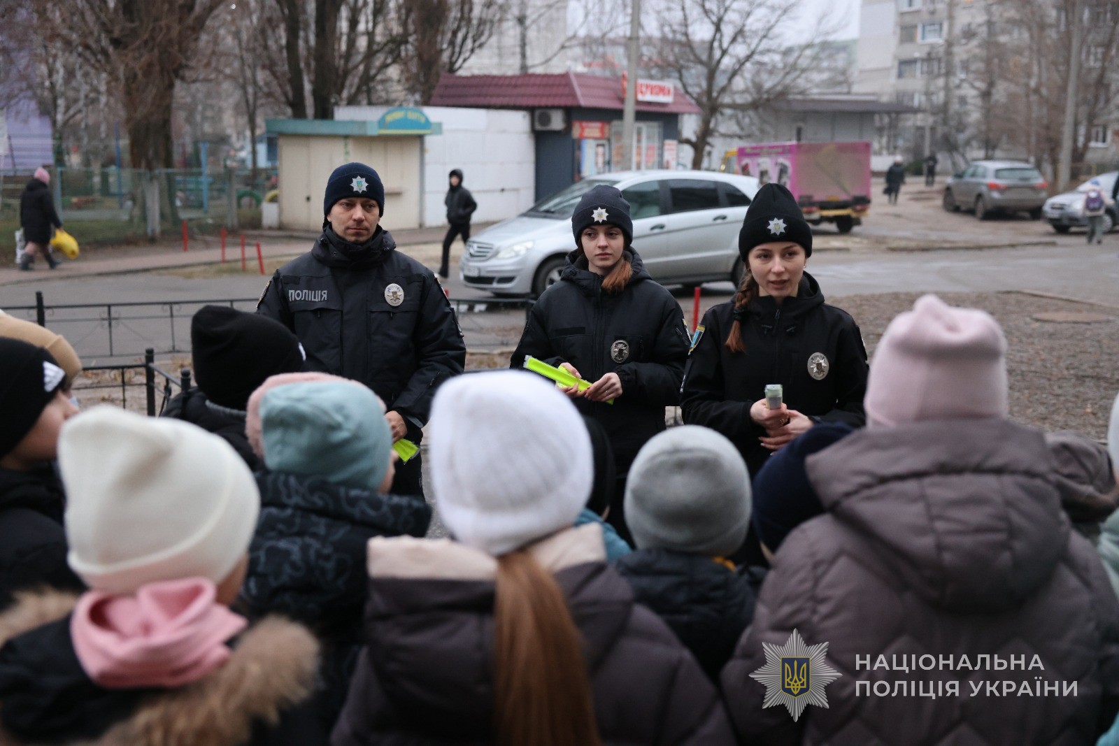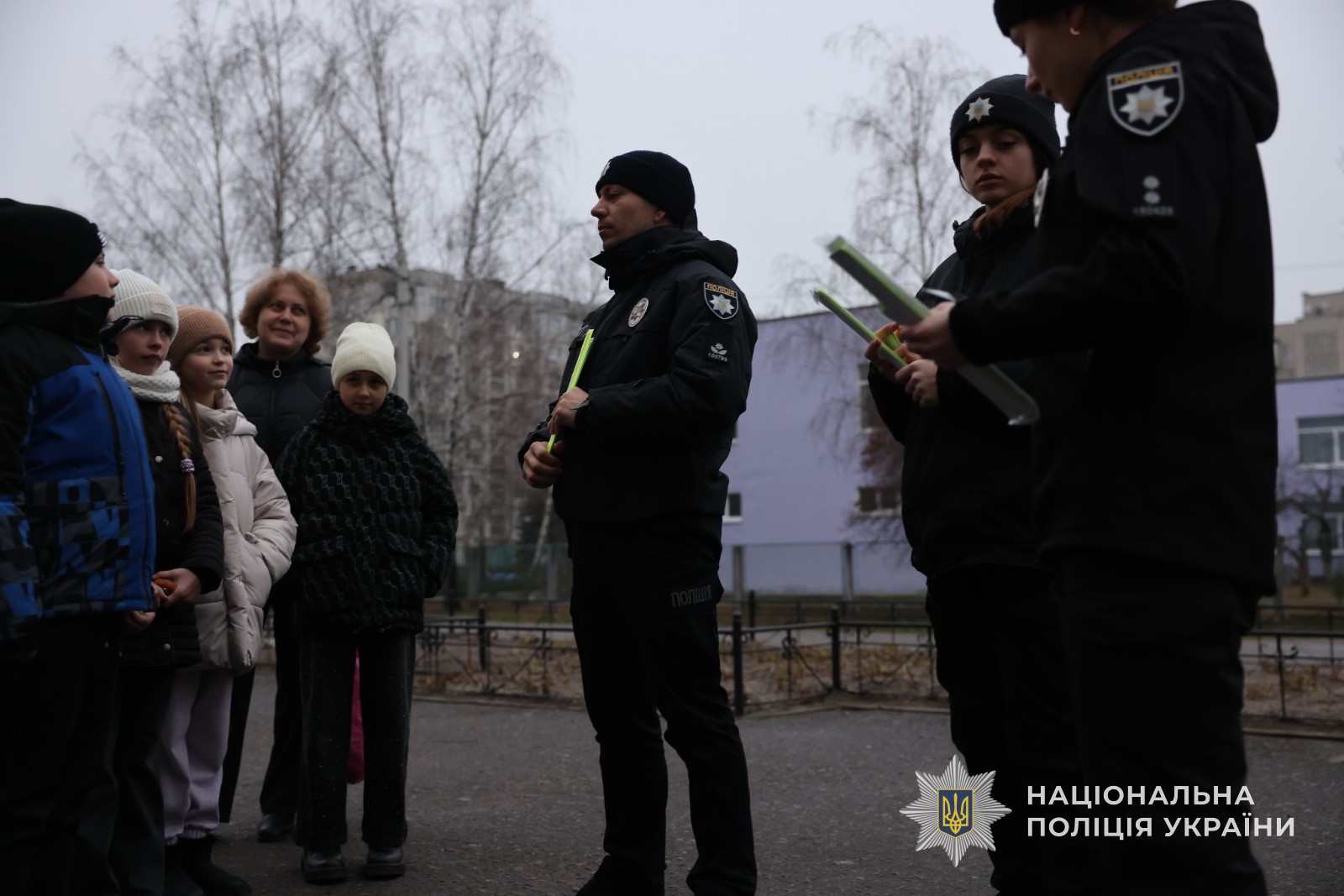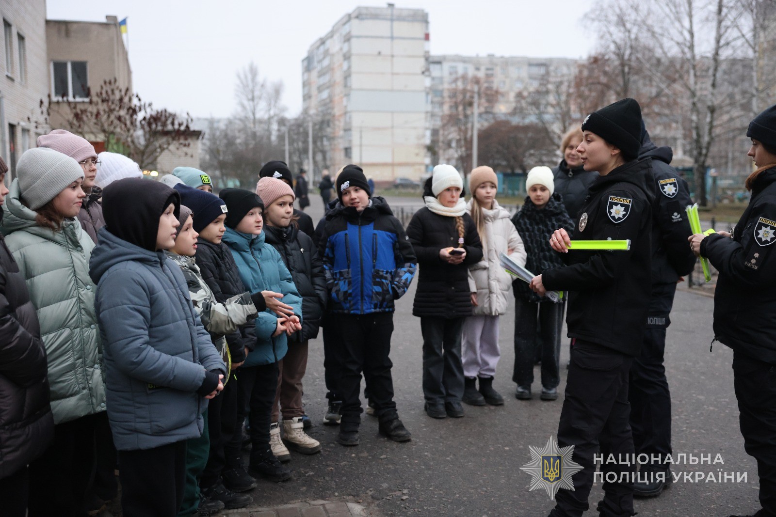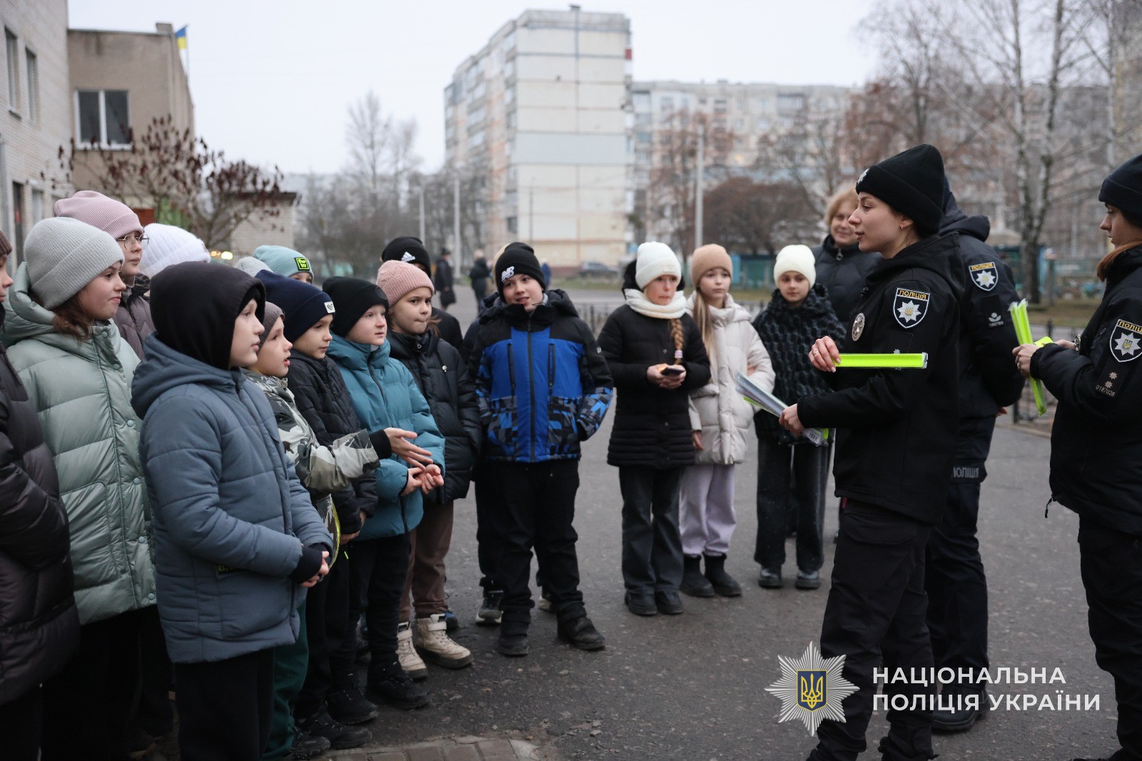 Під час заходу поліцейські не лише спілкувалися з учнями, а й подбали про їхню безпеку на практиці , адже кожній дитині було вручено світлоповертальний флікер, який варто носити під час переходу дороги або руху пішки в умовах недостатньої видимості.