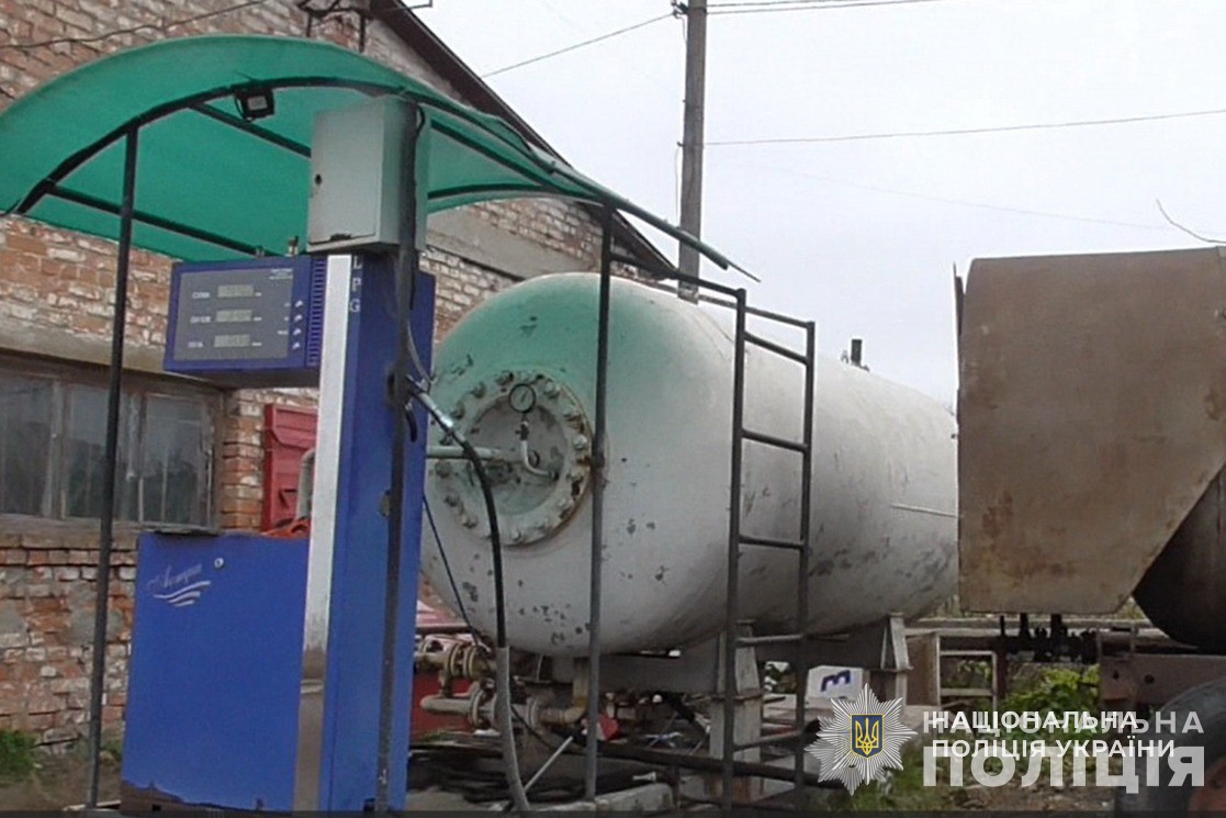 За результатами проведених слідчих (розшукових) дій правоохоронці вилучили обладнання: ємності з газороздавальними колонками та пересувні резервуари без розпізнавальних знаків, що містили залишки нафтопродуктів.