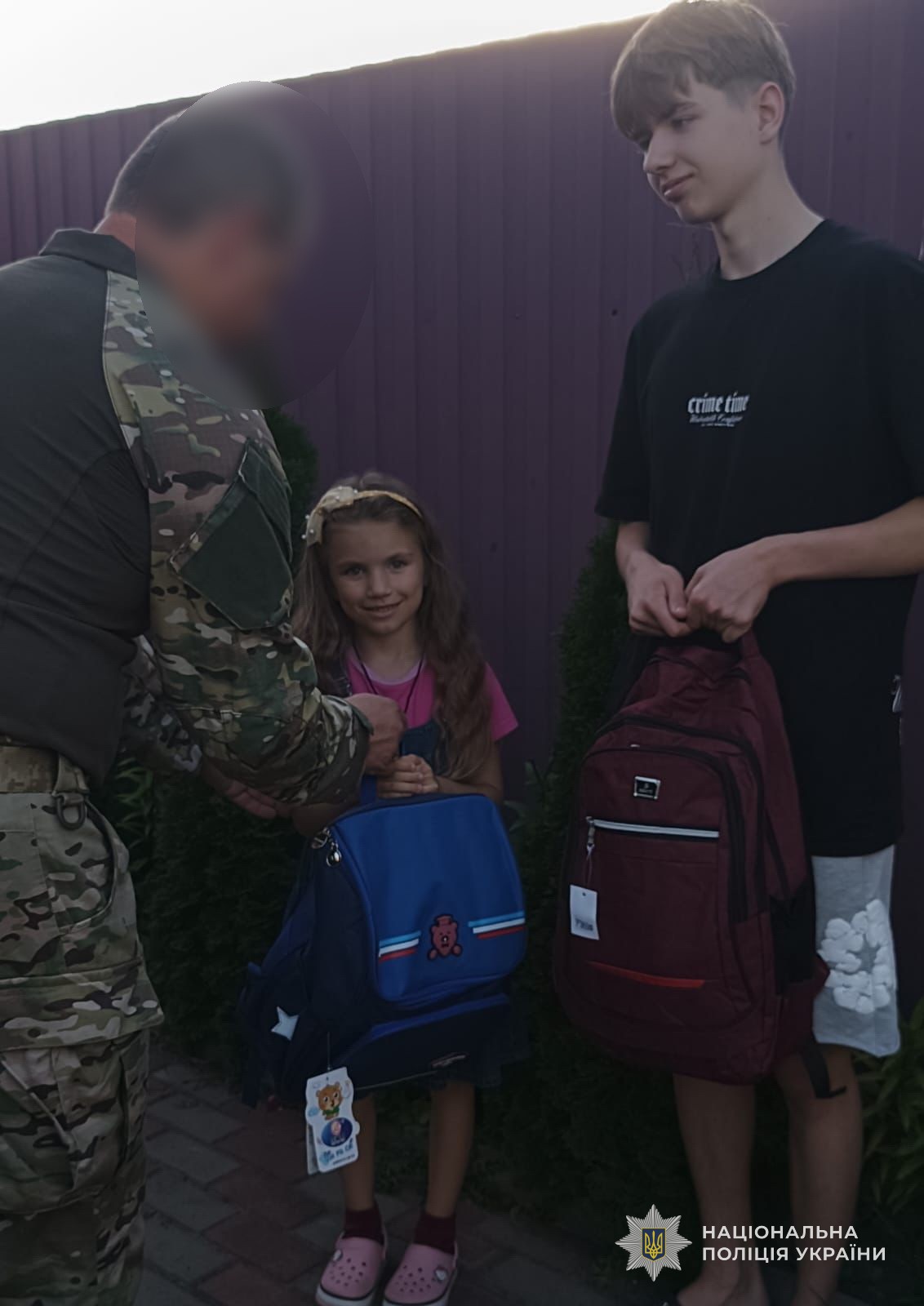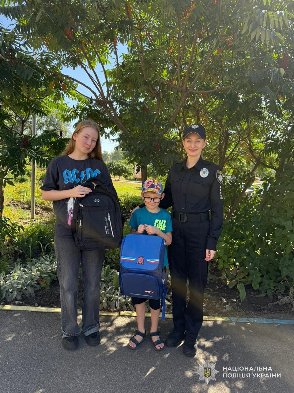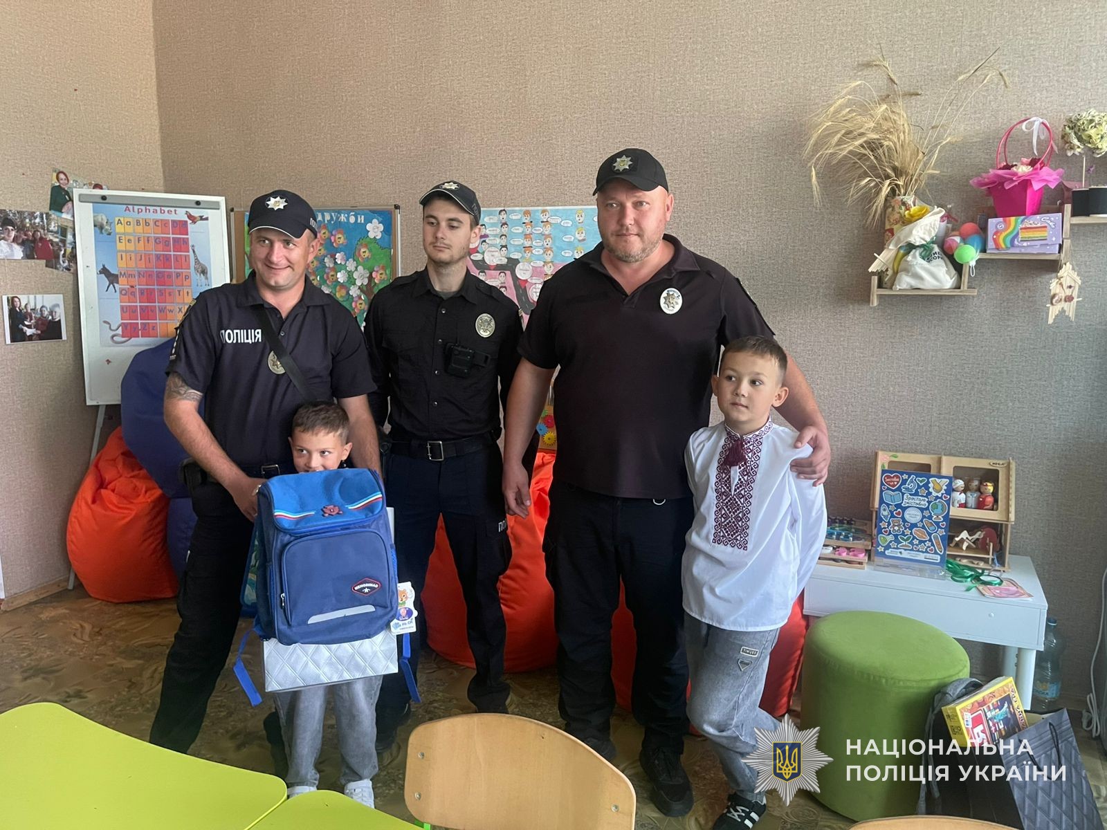 Напередодні 1 вересня, діти поліцейських, які загинули або були поранені під час служби, отримали шкільні рюкзаки за сприяння Всеукраїнської профспілки Національної поліції.