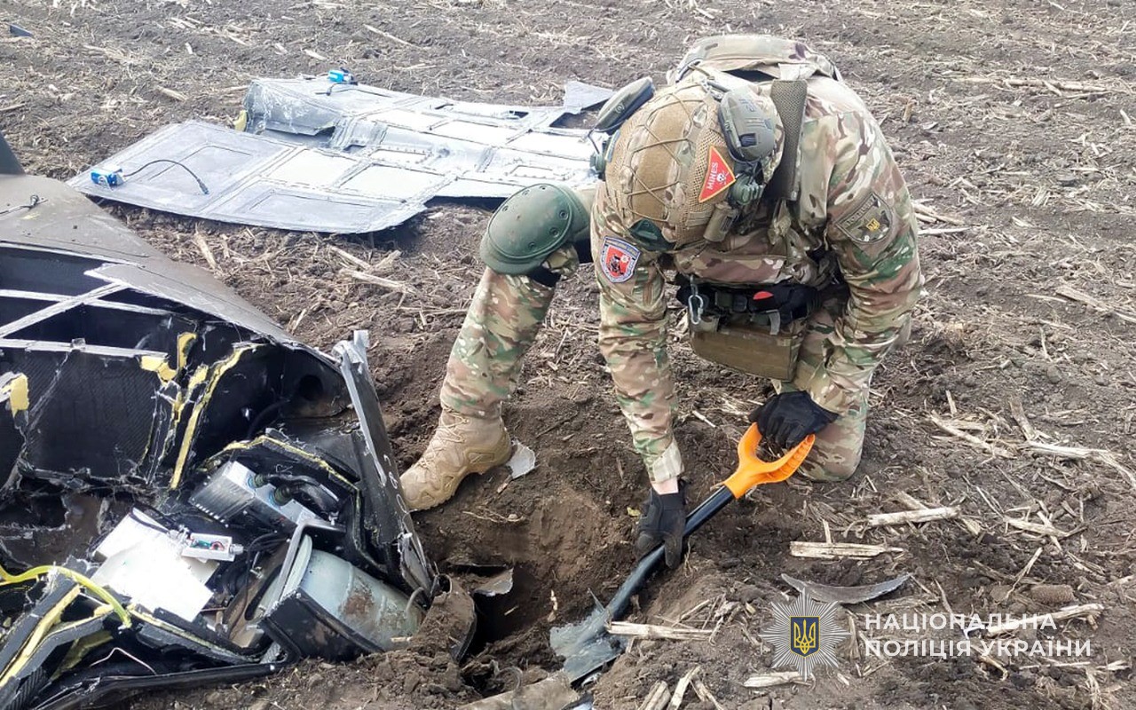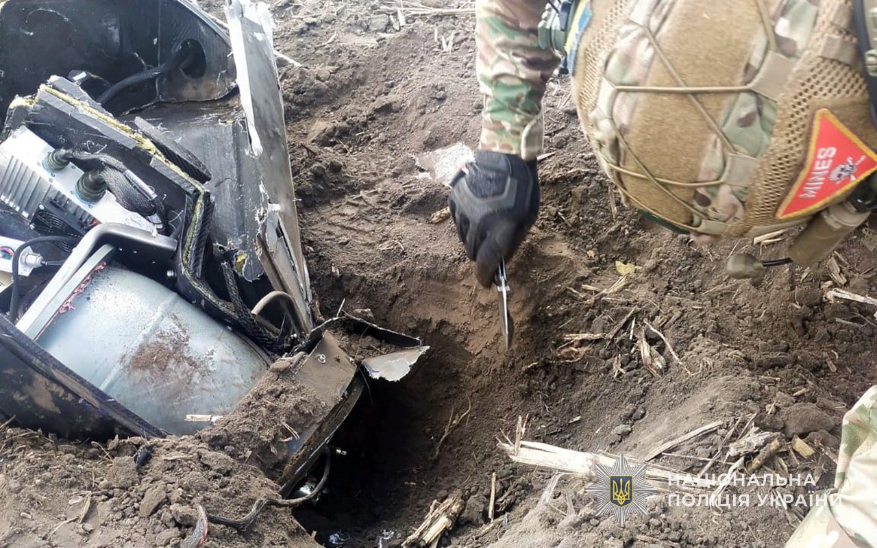 Прибувши за вказаною локацією спеціалісти управління вибухотехнічної служби Головного управління Національної поліції в Сумській області виявили у землі безпілотник ударного типу, яким армія рф щоночі атакує населені пункти нашої країни. На місці знахідки поліцейські встановили, що БпЛА має в собі бойову частину осколково-фугасної запалювальної дії, яка, на щастя, не здетонувала. До того ж корпус літального апарату був сильно пошкоджений від удару об поверхню землі, тож предмет представляв особливу небезпеку для оточуючих. Фахівці-вибухотехніки обережно відокремили бойову частину від безпілотника та вивезли її на спеціальний майданчик, подалі від людей. Там вони знищили боєприпас, здійснивши дистанційний підрив.